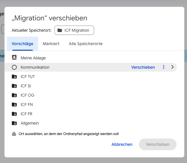 - Danach wird die Datei bzw. der Ordner verschoben.