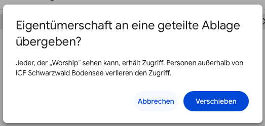 Tipp: Wenn Sie die Eigentümerschaft für viele Dateien und Ordner gleichzeitig übertragen, kann es einige Zeit dauern, bis Sie die Änderungen sehen.
