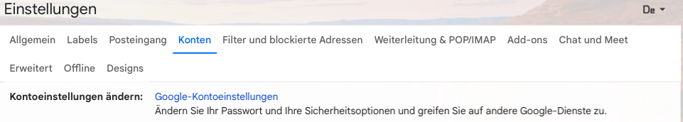 Wenn Du dann auf den Link klickst „Google-Kontoeinstellungen“, öffnet sich ein neuer Tab.