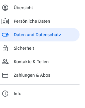 In der Navigation auf der linken Seite wähle bitte „Daten und Schutz“ aus. Dann wirst du folgendes sehen, wenn du dort etwas heruntersollst: