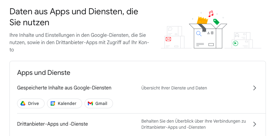 In „Übersicht Ihrer Dienste und Daten“ findest Du eine Übersicht,